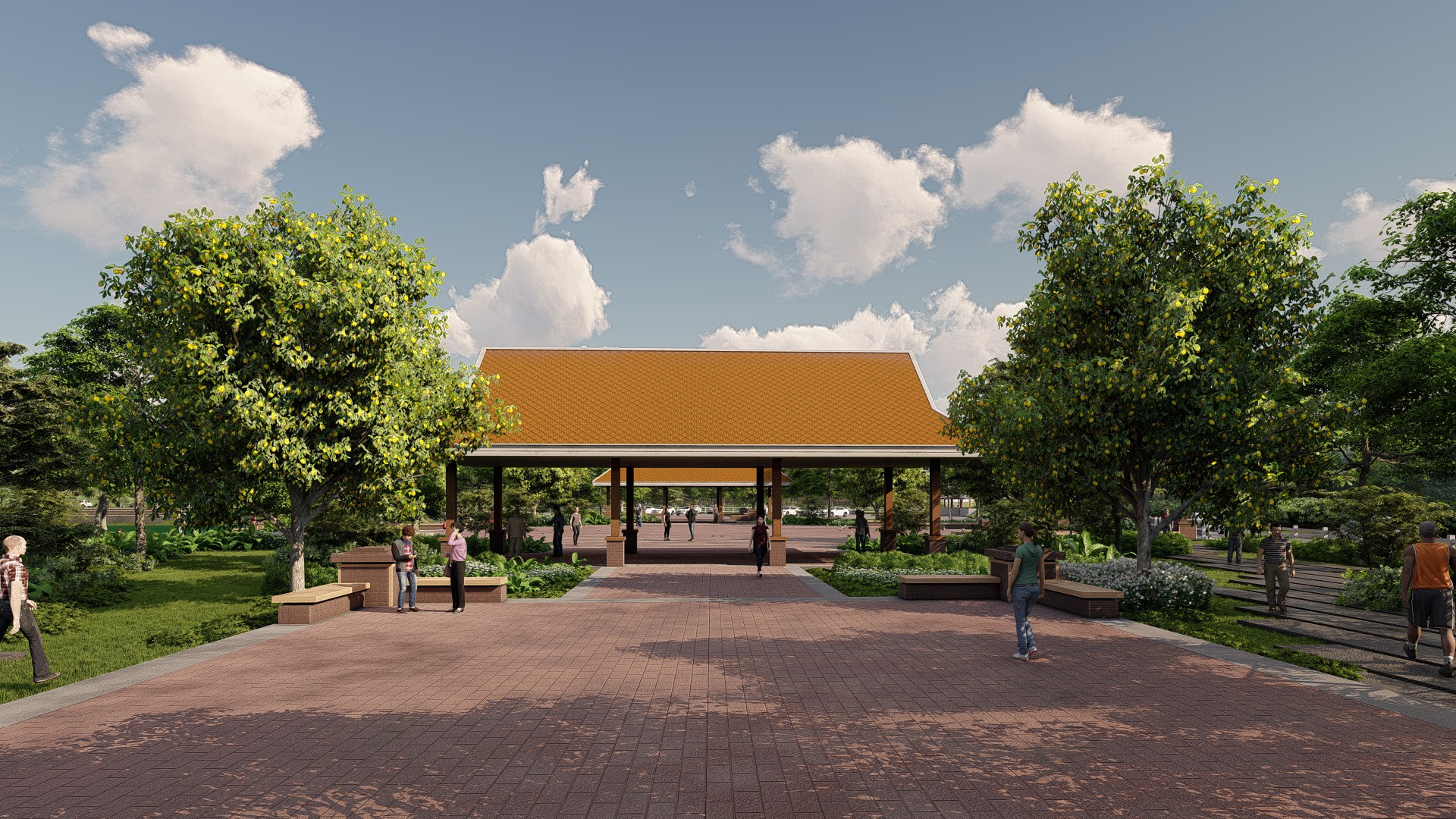รายละเอียดโครงการ: ออกแบบวางผังโดยใช้แนวคิดวางแนวแกนจากสถาปัตยกรรมแบบขอม มีบ่อ น้ำที่เป็นบารายเก่าจากลักษณะเดิมของพื้นที่ ใช้อิฐมอญทำลวดลาย และใช้ลายผ้าเมืองศรีภูมิและโหวดมาประกอบ ซึ่งเป็นการส่งเสริมเอกลักษณ์ และสามารถเชื่อมโยงกับแหล่งท่องเที่ยวเดิม คือ “กู่พระโกนา” ได้อีกด้วย