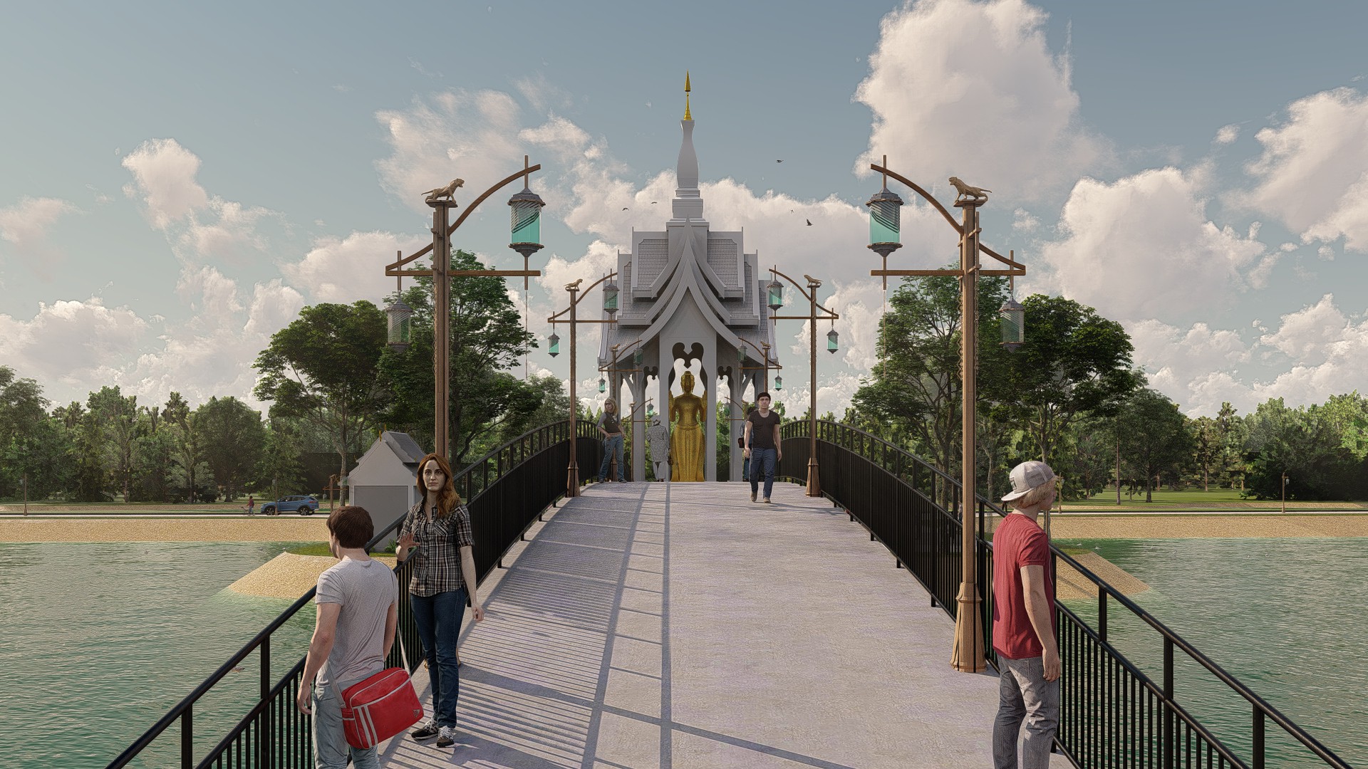 รายละเอียดโครงการ: เน้นการออกแบบให้มีการเข้าถึงพื้นที่ได้โดยง่ายและมีการใช้ประโยชน์ของพื้นที่ อย่างเต็มศักยภาพ พัฒนาพื้นที่สวนสาธารณะของเมืองรองรับการท่องเที่ยว และเพิ่มจุดสนใจของพื้นที่โดยการออกแบบพื้นที่ลานวัฒนธรรมลานกิจกรรมริมน้ำ พื้นที่ออกกำลังกาย พื้นที่พักผ่อนหย่อนใจ และพื้นที่การเรียนรู้ ส่งเสริมให้เกิดกิจกรรมของพื้นที่ที่หลากหลาย