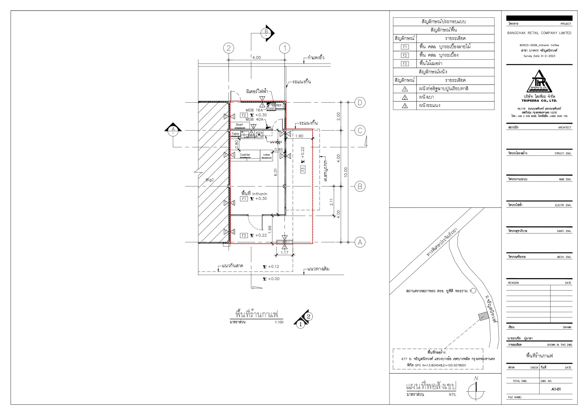 บริการ สำรวจ เขียนแบบขออนุญาตก่อสร้างร้านกาแฟ โดยมีกระบวนการจัดทำเอกสารและแบบแปลนที่จำเป็นต้องใช้เพื่อขออนุญาตจากหน่วยงานที่มีอำนาจ แสดงรายละเอียดของการออกแบบร้านกาแฟ เช่น ขนาด, รูปแบบ, การแบ่งพื้นที่ใช้ประโยชน์, ตำแหน่งของบาร์กาแฟ, โต๊ะรับรองลูกค้า รวมถึงระบบไฟฟ้า, ประปา, ระบบระบายอากาศ, และความปลอดภัย เพื่อให้ได้ซึ่งเอกสารที่ครบถ้วน ถูกต้อง สมบูรณ์ พร้อมส่งมอบให้ลูกค้าในเวลาอันรวดเร็ว
