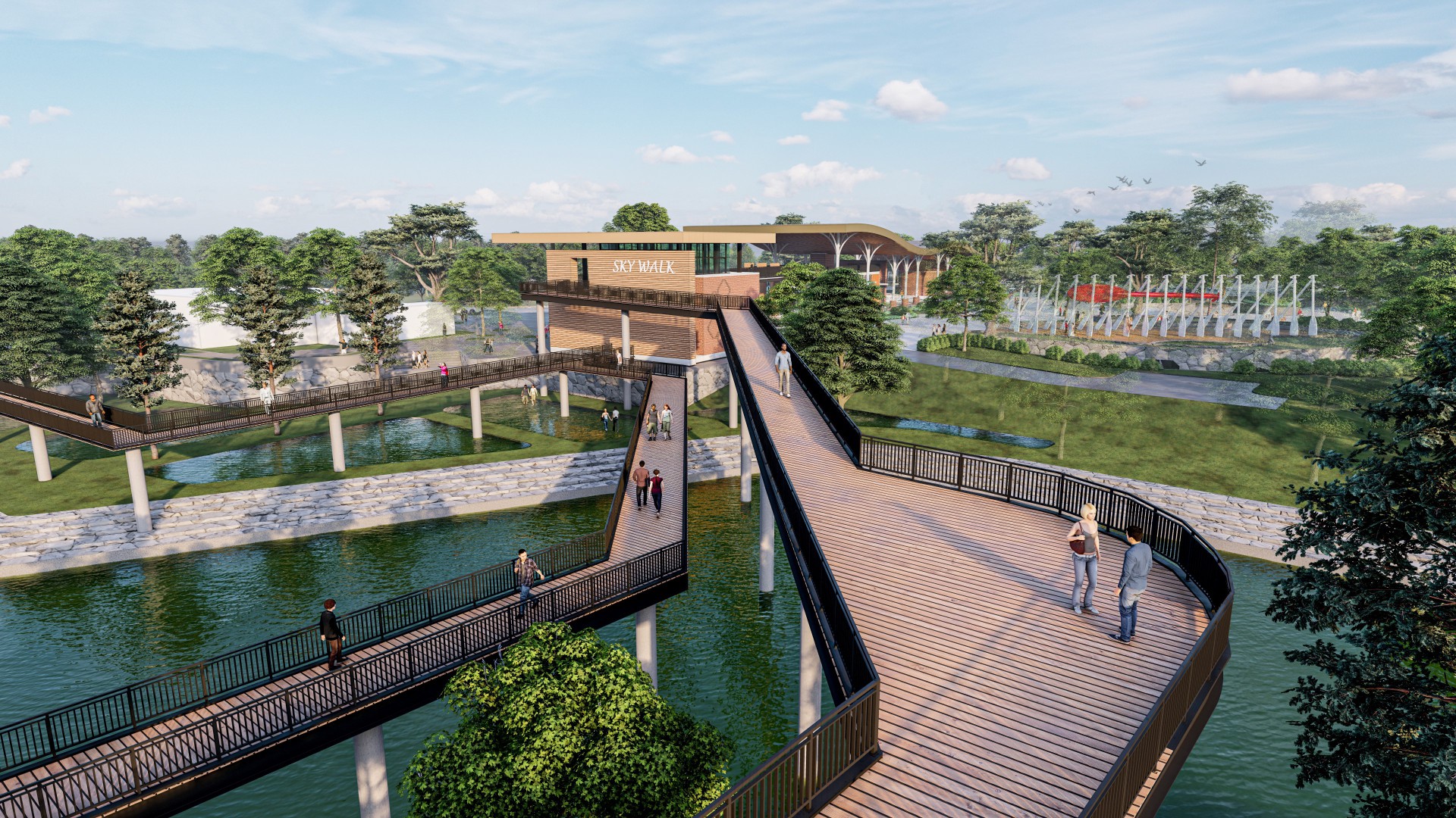 รายละเอียดโครงการ: สวนสาธารณะในบริเวณพื้นที่ชุ่มน้ำที่มีพื้นที่สำหรับชมธรรมชาติ ทางเดิน skywalk และศูนย์การเรียนรู้เกี่ยวกับธนาคารน้ำใต้ดิน